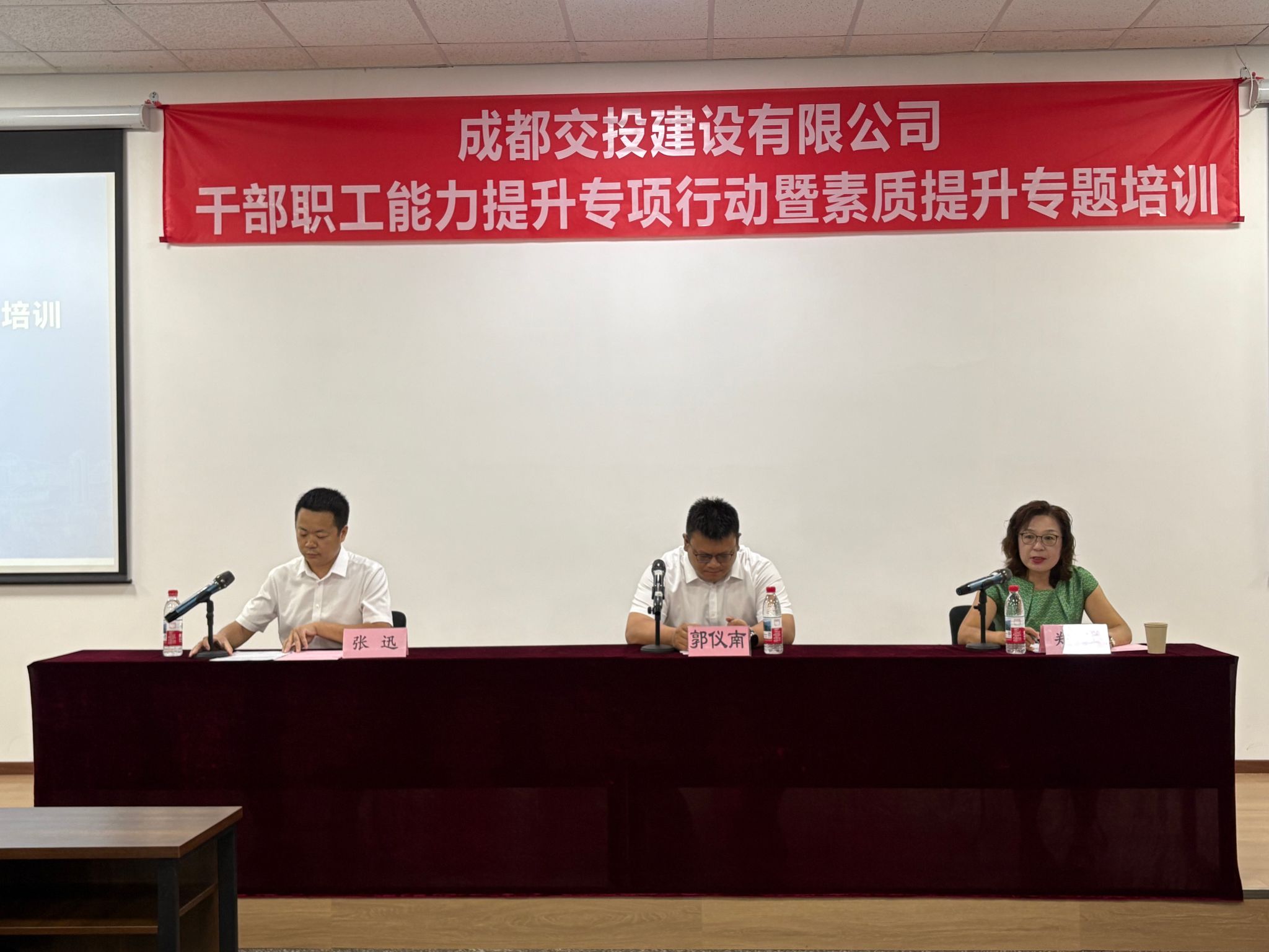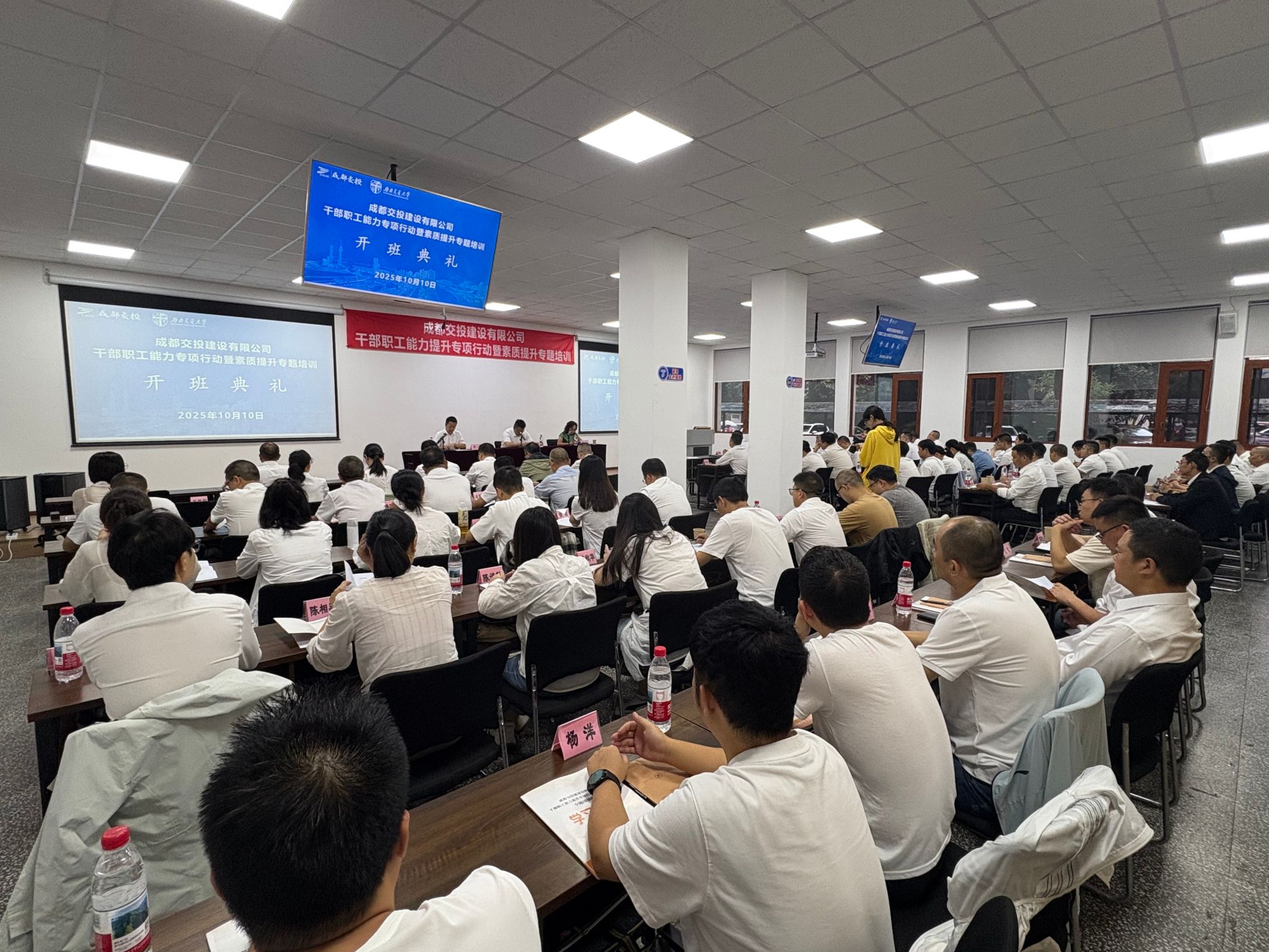 2025年10月10日上午,成都交投建设有限公司“干部职工能力提升专项行动暨素质提升专题培训——城市更新与市政道路养护高级研修班”在九里校区土木馆正式开班。土木工程学院党委书记郑江,成都交投建设有限公司总经理郭仪南出席开班仪式。开班仪式由bat365中文官方网站知识更新教育中心主任张迅主持。
